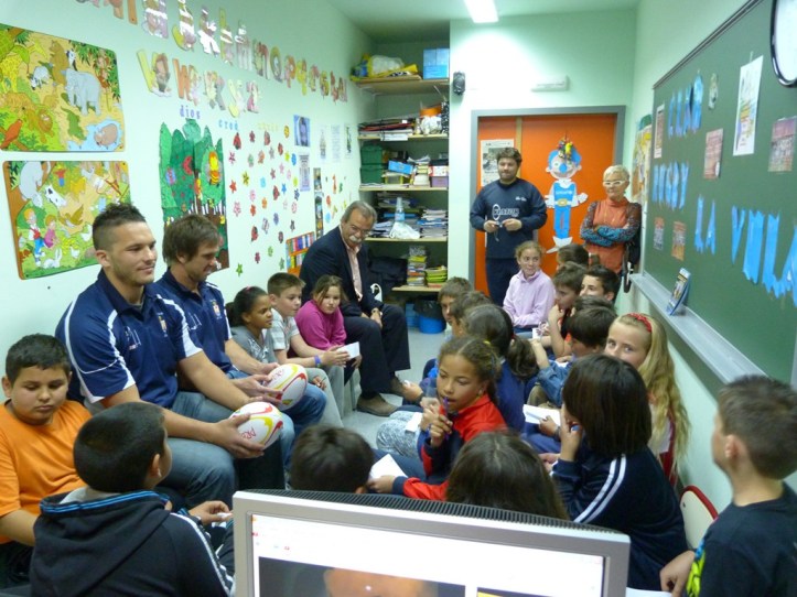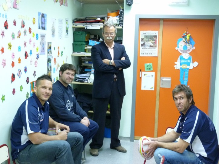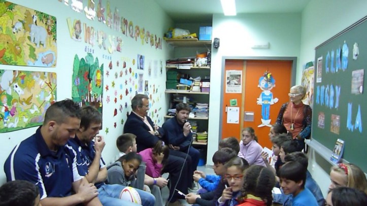 FIRMARON AUTÓGRAFOS SIN PARAR Y REGALARON UN BALÓN DE RUGBY AL COLEGIO Y OTRO DEDICADO A LA RADIO, JUNTO CON UNA CAMISETA DEL EQUIPO.