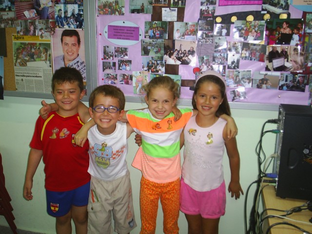 LOS NIÑOS DE CINCO AÑOS B: ADRIÁN LABRADOR, KATE, ELISABETH, ARTURO, DARREN, GRABAN ANUNCIOS PARA NUESTRA RADIO, «RADIO SOLIDARIA AMIGA, ONLINE EN SU ESTUDIO ACTUAL EN EL COLEGIO EL MURTAL