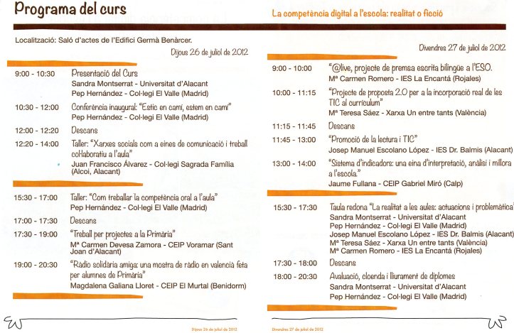 Un curs què va ser molt, molt interessant. Amb un grup de grans professionals que van participar i presentat per: SANDRA MONTSERRAT (professora de la Universitat d’alacant) i PEP HERNÁNDEZ (professor del Col·legi El Valle- Madrid) uns organitzadors inmillorables.