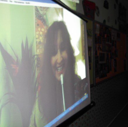 ESTELA que contestaba las preguntas que los reporteros de Radio Solidaria Amiga Online le hacían, con una sonrisa y muchas veces cantando y ofreciéndonos, su bella voz
