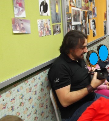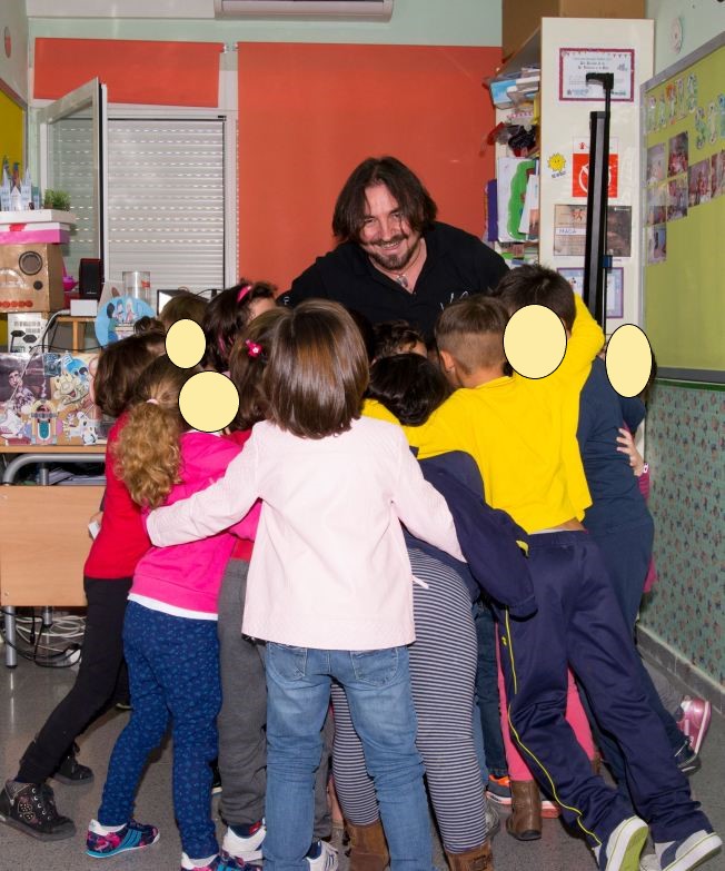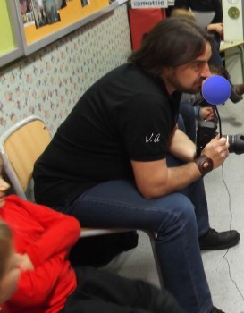 Al finalizar la entrevista y cuando los peques dejaron de preguntar a VICENTE y de abrazarlo, se hicieron la foto que parece al principio del este post y que por supuesto se hizo con la cámara y el trípode que VICENTE muy amablemente, para que los chavales conocieran mejor su trabajo, trajo a la radio