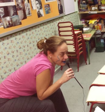 Mª JOSÉ GARCÍA que acababa de interpretar una obra para los chavales del cole sobre el reciclaje, pasó por nuestro estudio para someterse a nuestros intrépidos reporteros