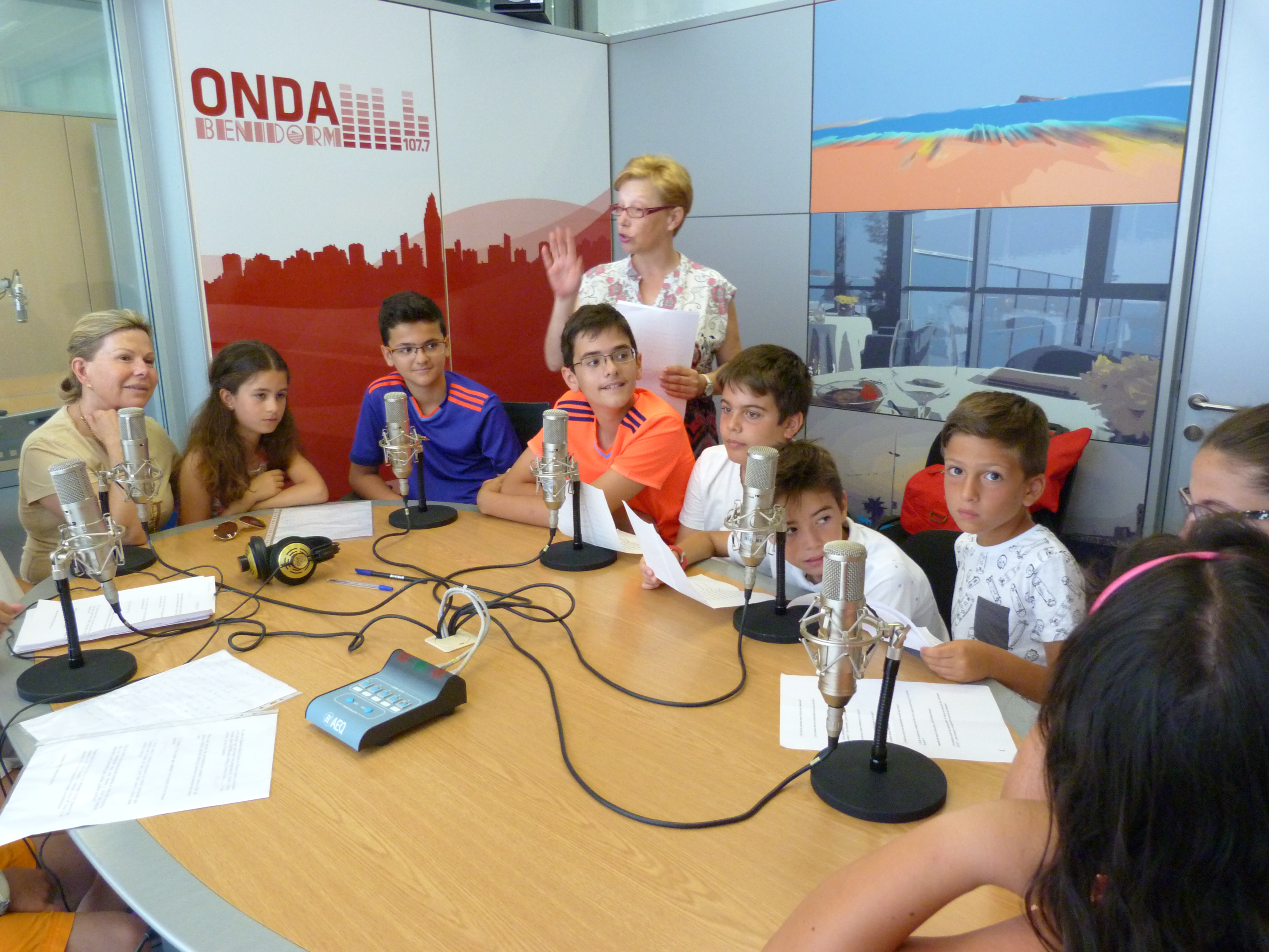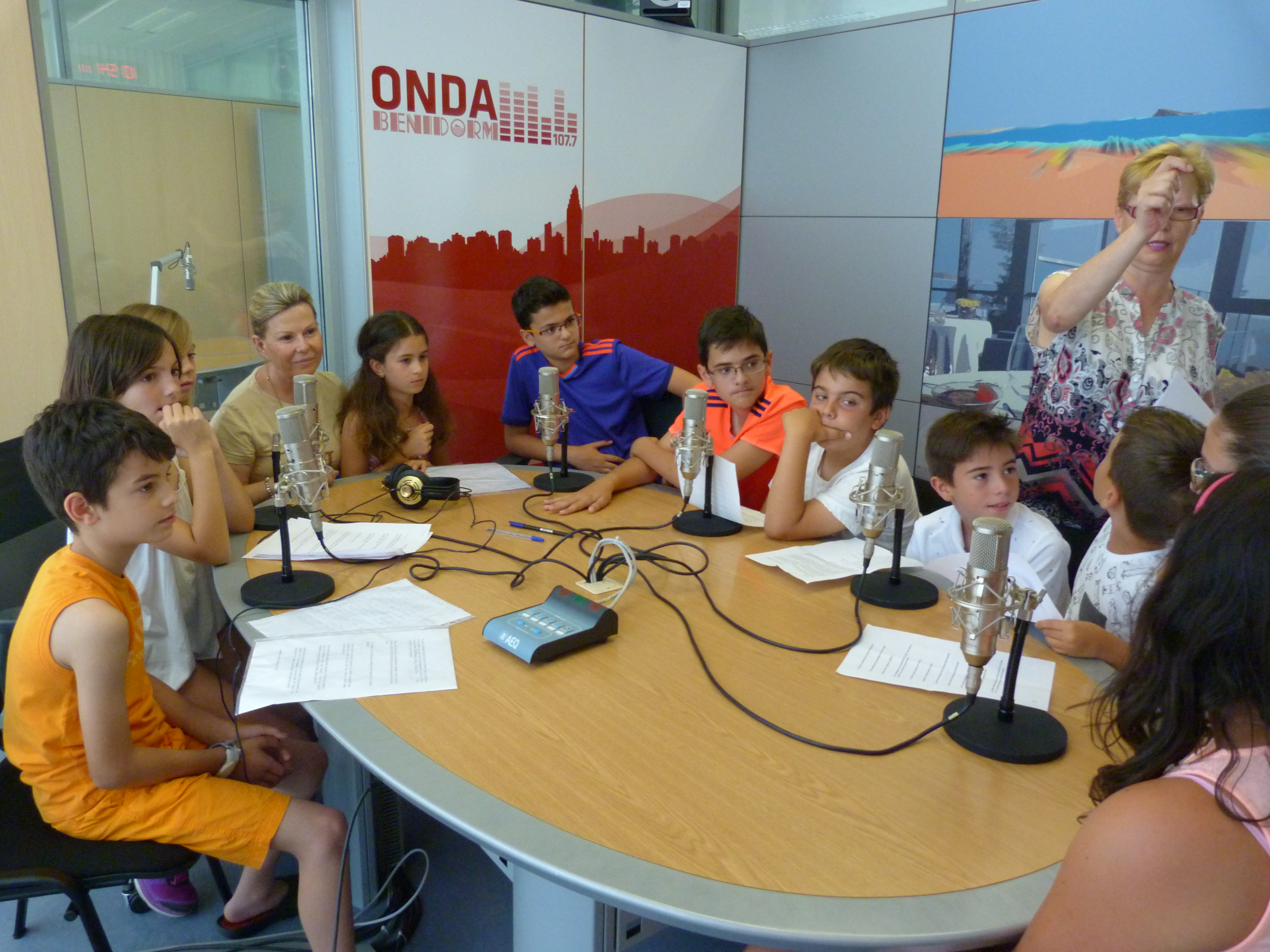 Los chavales de varios cursos: 3º, 4º y 6º estaban entusiasmados por hacer el programa en ONDA BENIDORM: Fernando, Irene, Mireia, Cristina, Javier y Pablo Garrido, Pablo Iborra, Alejandro, Pablo, Aitana y Sandra