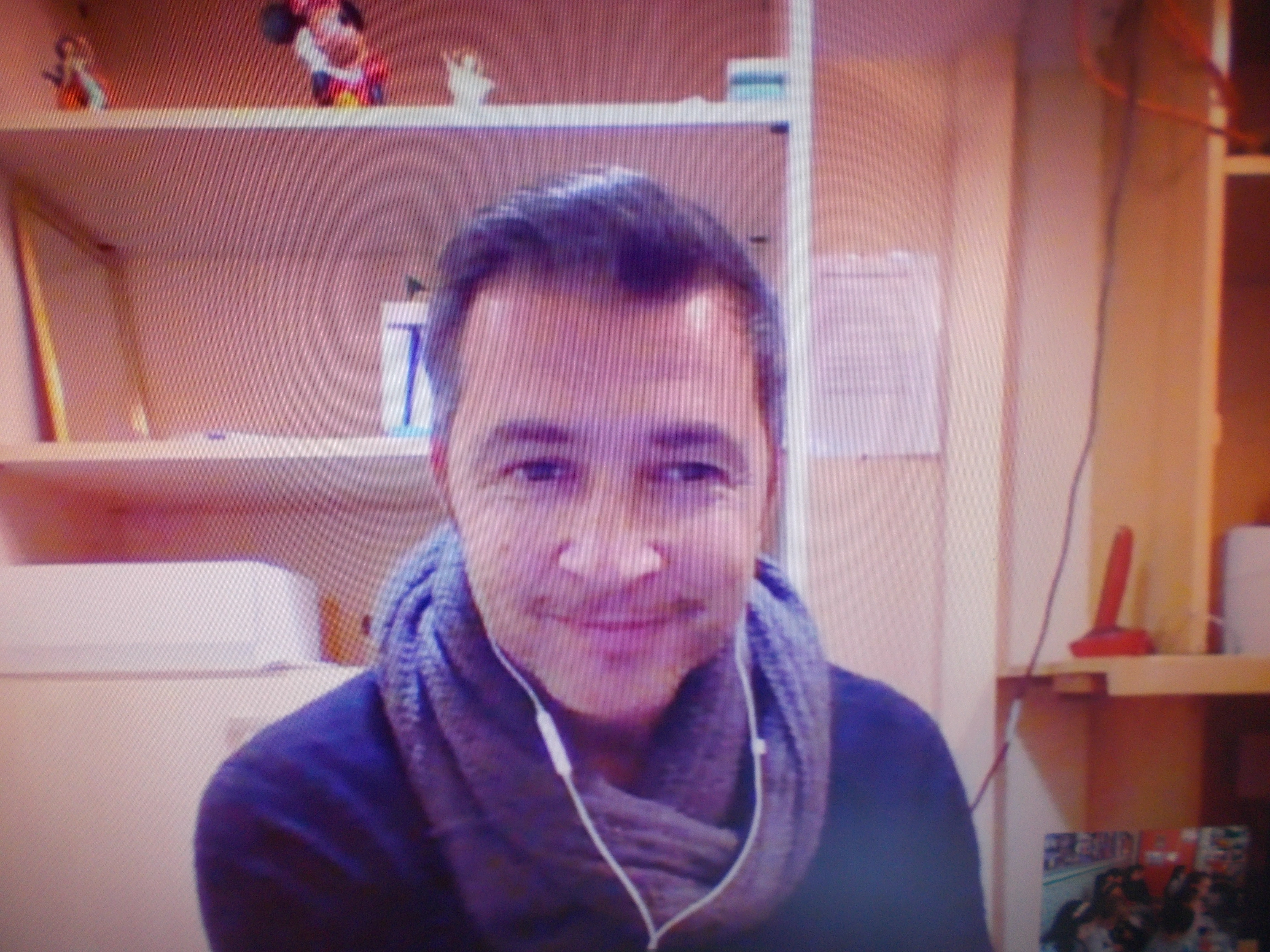QUIM CAPDAVILA hizo la entrevista desde el teatro ya que en esos momentos estaban representando para escolares el musical: «La Bella y la Bestia»