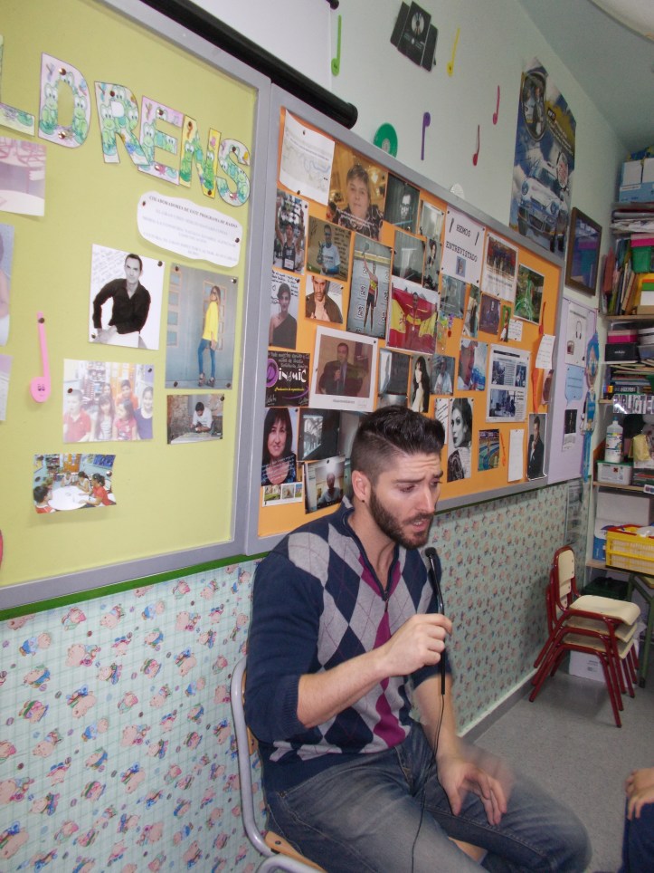DAVID CLIMENT que el fin de semana pasado había actuado en la Nucía, que el día anterior había actuado en Gran Canaria y la noche anterior en Benidorm Palace, su segunda casa, no dudó en venir a estar con estos jóvenes reporteros que a pesar de su edad habían preparado junto a su tutora Rosana, unas preguntas muy interesantes